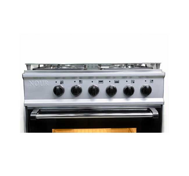 بوتاجاز نور “جامبو” 4 شعلة – مقاس 60×60 سم – لون فضي (ستانلس) بالكماليات الكاملة والشواية