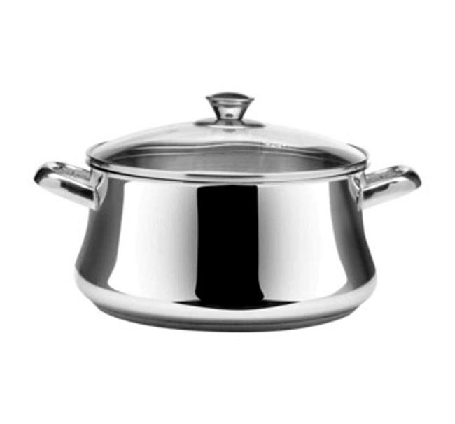 حلة طهي كلاسيكية من زهران مصنوعة من الستانلس ستيل عالي الجودة بمقاس 28 سم، تتميز بغطاء زجاجي شفاف لمتابعة الطهي بسهولة وتصميم متين يضمن توزيعاً مثالياً للحرارة.
