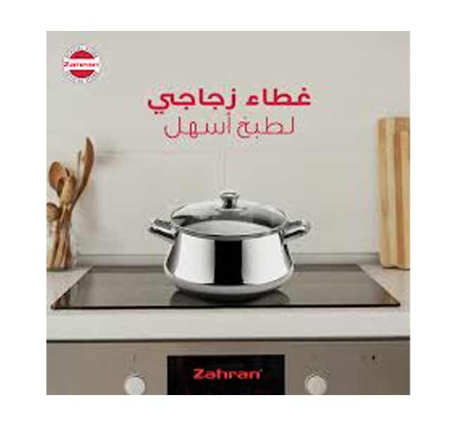 حلة زهران كلاسيك ستانلس ستيل (Zahran Classic) – مقاس 22 سم بغطاء زجاجي