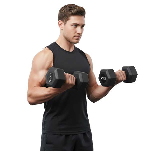 الوزن: 4.5 كجم لكل دمبل (إجمالي الزوج 9 كجم).