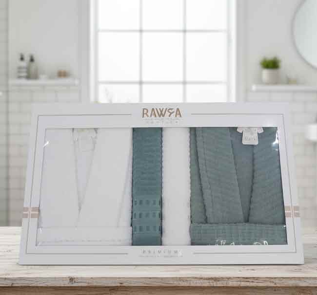 مكونات الطقم10 قطع (2 برنس + 2 فوطة حمام + 4 فوط وجه + 2 حذاء حمام)