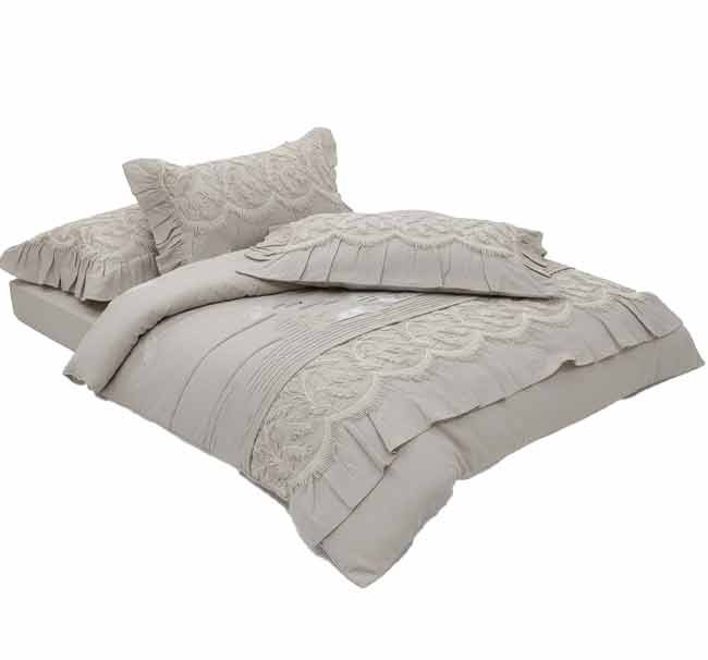 طقم سرير زهرة (Zahra Home Collection) موديل B114 – قطن 100% مطرز بالجوبير الفاخر