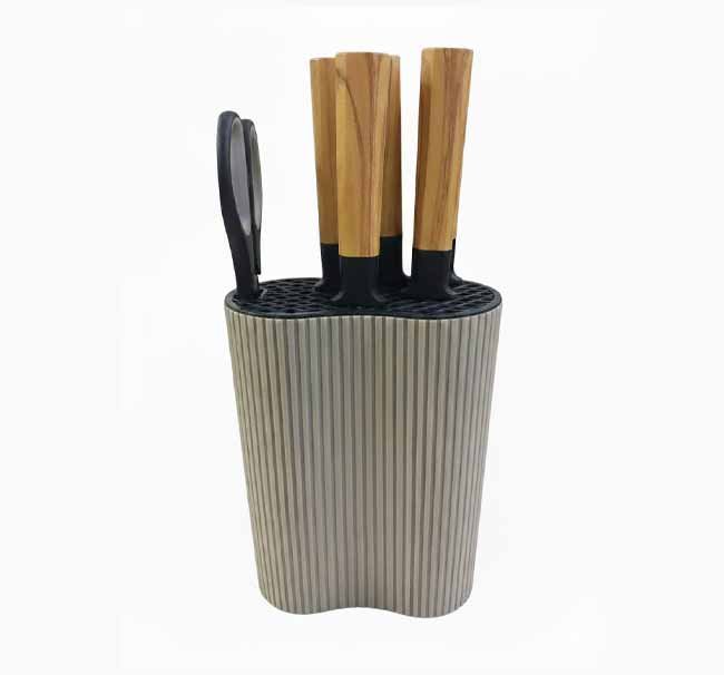 - طقم متكامل (6 قطع): يشمل مجموعة أساسية من السكاكين + مقص مطبخ قوي.