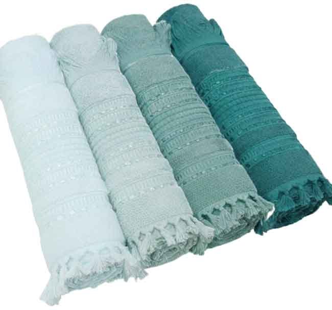 العدد: 4 فوط مقاس (50×100 سم) بتطريز أنيق.