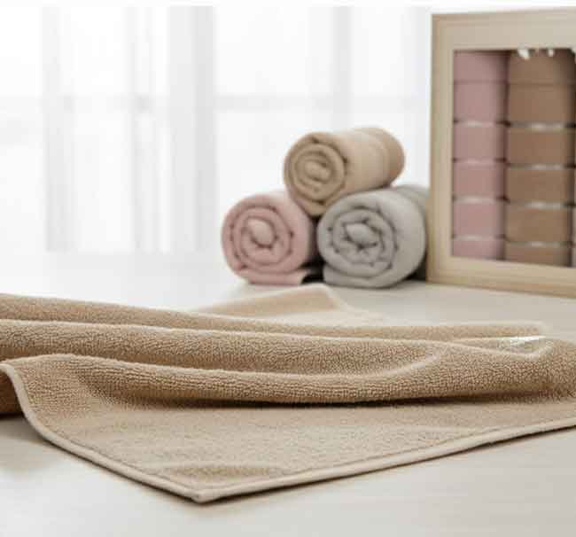- ألوان سادة هادئة: تأتي الفوط بتدرجات لونية هادئة وجذابة (مثل الوردي، البيج، الرمادي، والأبيض الكريمي)، مما يضفي لمسة من الرقي والنظام إلى ديكور الحمام.