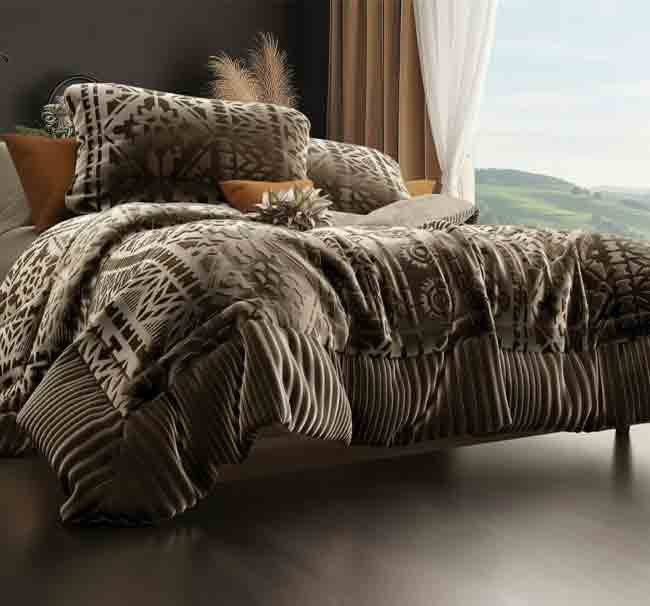 طقم لحاف العروسة حبيبة جولدن (3 قطع) – فخامة الفرو ودفء القطيفة!