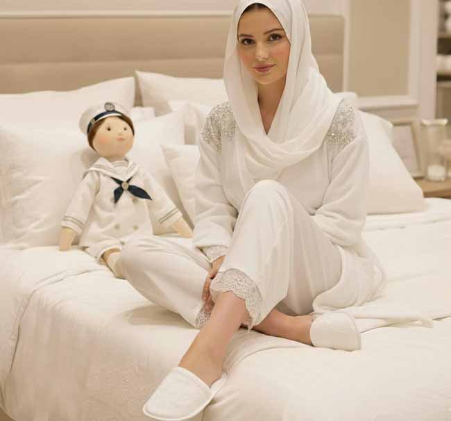 طقم مكون من برنس العروسة وشبشب مريح، صُمم خصيصاً ليمنحكِ شعوراً بالفخامة والنعومة في ليلة العمر.