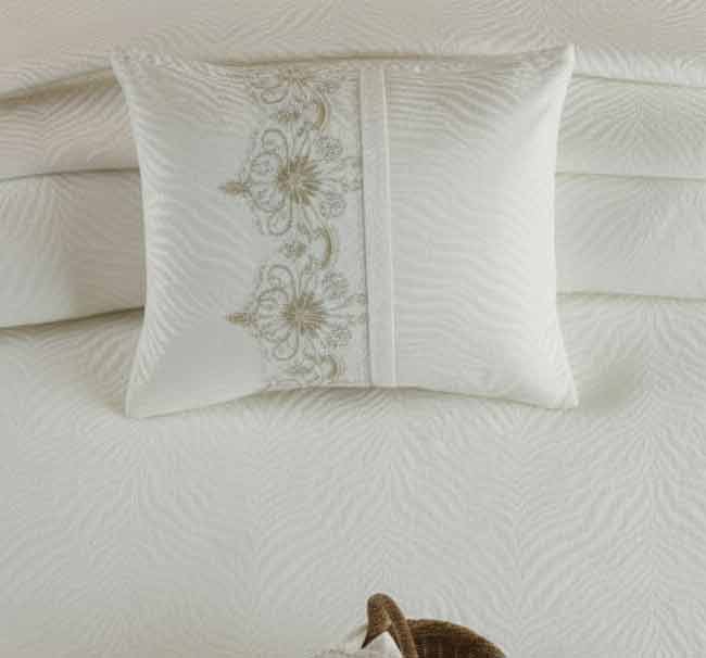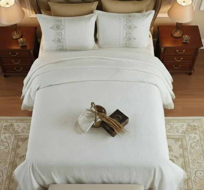 • مفرش عروسة استثنائي: صُمم ليكون محور غرفة النوم، مضيفاً لمسة من الرقي والترف على سرير الزوجية.