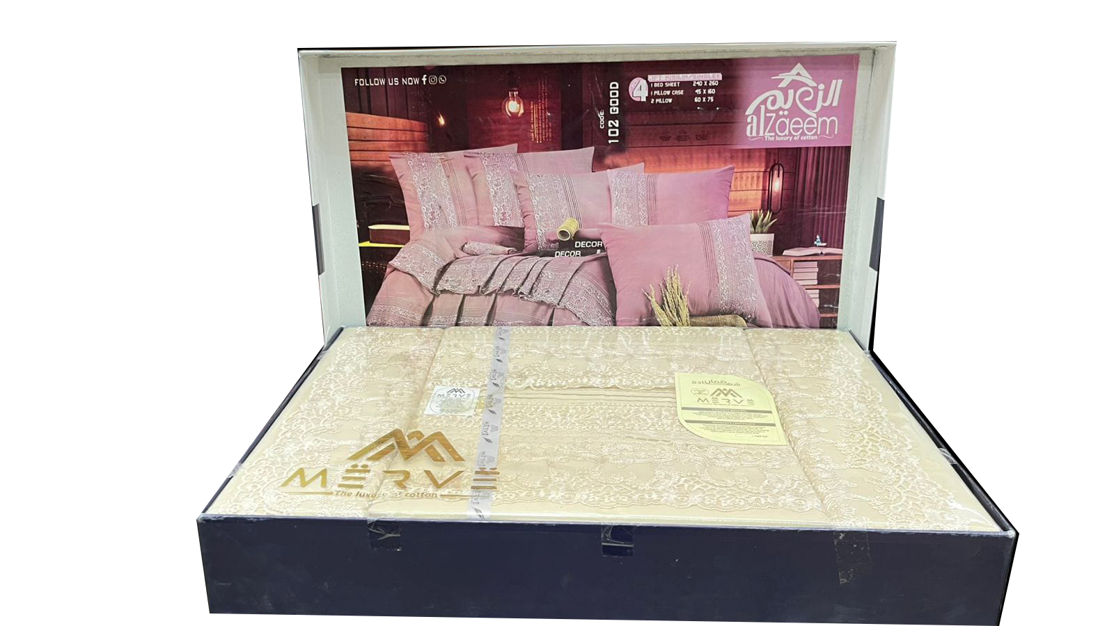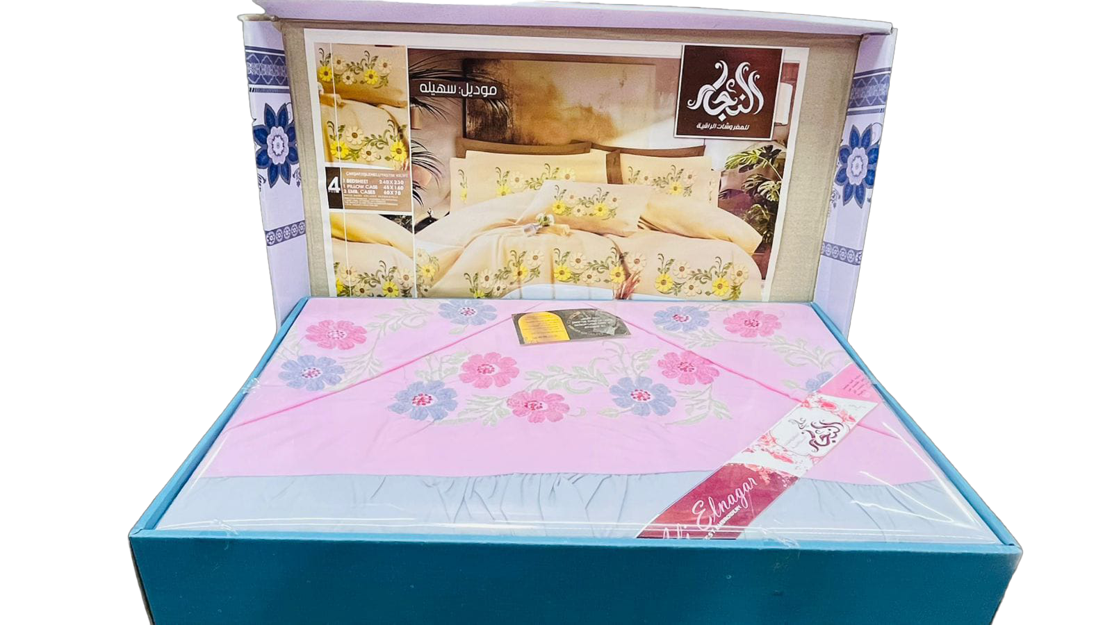 أطقم ملايات فاخرة: تضم الباقة أطقم سرير من أرقى الماركات مثل (Dantela, Al-Nagar, Al-Zaeem) بتصاميم مطرزة ومطبوعة تناسب غرف النوم الرئيسية والفرعية.