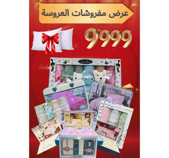 احصلي على “عرض مفروشات العروسة” من مول سلطان بسعر 9999 جنيه! باقة شاملة تضم أطقم ملايات، فوط قطنية، ووسائد من أفضل الماركات (الندى، دانتيلا، والزعيم). العرض الأقوى لتجهيز العرائس في مصر.